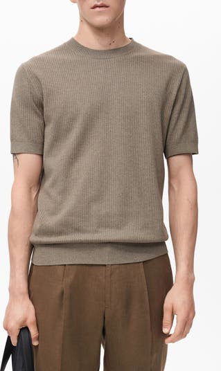 A step up from a classic T-shirt, this top is made from soft and stretchy rib-knit fabric lightened with a hint of linen.