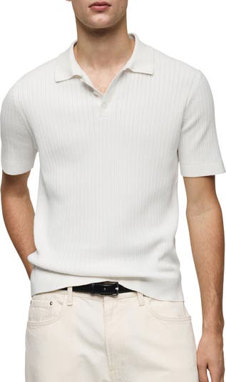 Allover ribbing brings soft texture to this cotton-blend polo top knit with dropped shoulders for a perfectly relaxed fit.