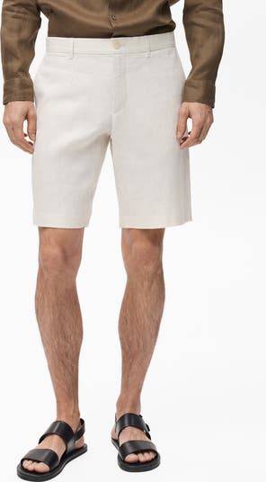 A flat front and classic knee length make an instant favorite of shorts cut from soft linen with a slim fit and chino styling that takes you anywhere.