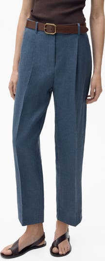 Breezy linen lends warm-weather charm to straight-leg pants fashioned with clean creases at the front and back.
