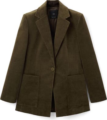 Add a pop of plush to looks both fun and fancy with a veleveteen jacket simply closed with a single covered button.
