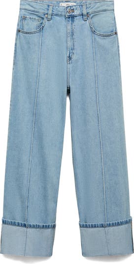 Statement-making cuffs draw attention to the wide-leg silhouette of these everyday jeans cut from nonstretch cotton denim for a crisp fit with each wear.