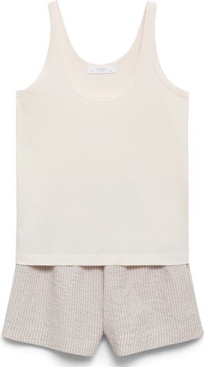 An elastic drawstring waist completes the cozy fit of these striped pajama shorts paired with a solid tank top cut for comfort from soft, breathable cotton.
