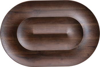 This chip and dip bowl, crafted from durable mango wood with a rich walnut finish, is a stunning addition to Modern, Boho, Scandinavian, and Rustic interiors. Perfect for serving snacks and dips, this oval bowl combines functionality with natural beauty, making it a centerpiece for any gathering. Made of durable mango wood, it measures 17.75 inches in length and 12 inches in width, offering both style and practicality. The unique design and versatile size make it ideal for entertaining guests or simply enjoying a cozy night in. Its elegant appearance and sturdy construction ensure long-lasting use for years to come.