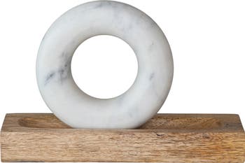 Mango Wood Mortar with Marble Ring Shaped Pestle, Natural and White