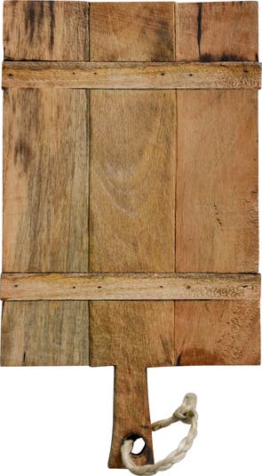 This mango wood serving board with a rope handle is a rustic and charming accessory for the kitchen. It features a natural mango wood surface and a warm color that adds a touch of coziness and elegance to any food presentation. The mango wood is also strong and sturdy, making it an ideal choice. The cutting board has a rope handle tied to the board, adding contrast and a coastal flair to the design. Use the rope handle to carry or hang the cutting board when not in use. Whether serving snacks of displaying kitchen objects, this serving board will impress with its style and functionality. It measures 18 inches long and 10 inches wide, giving ample room to work with. This serving board will make a great addition to the kitchen or a thoughtful gift for someone special.