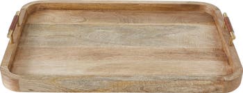 Leather-wrapped handles provide a refined counterpoint to the beautiful natural grain of mango wood that shapes this tray you'll love for serving, entertaining or simply keeping a space neat and organized.