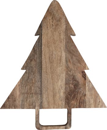 Elevate every holiday entertaining with this stunning Mango Wood Cheese and Cutting Board, artfully shaped like a tree. The board features a natural wood finish that highlights the beautiful grain and texture of the mango wood. Its tree-shaped design is decorative and functional, making it perfect for serving cheese, charcuterie, or other appetizers at the next gathering. The durable mango wood construction ensures long-lasting beauty, while the natural finish adds a warm and inviting aesthetic. Measuring 17.5 inches in length and 14.5 inches in width, this unique and festive cutting board is sure to impress guests and bring a touch of holiday cheer to celebrations.