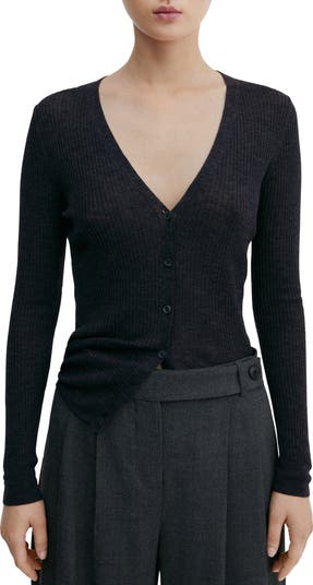 Pure wool elevates the fine rib of a slim-fit cardigan with tonal buttons at the front.