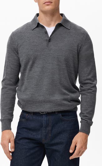 A smart look for chilly days, this sweater-polo keeps it classic with long sleeves, a regular fit and pure wool that's lightweight yet cozy.