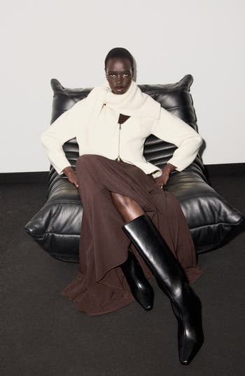 Layer up your look with the modern sophistication of this soft and woolly zip-front cardigan.