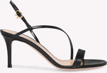 Crafted from Nuit glossy leather, Manhattan 70 is a round toe signature sandal with a 70mm stiletto heel. The design is defined by simple straps, enriched at the back by the signature Ribbon buckle. Handmade in Italy.
