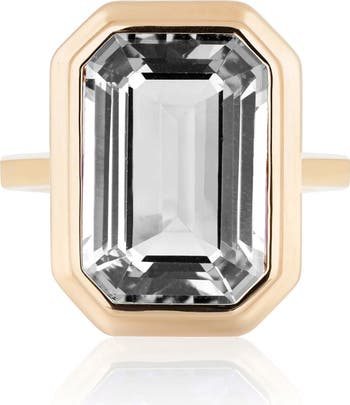 A bold cushion-cut stone mimics the electric energy of New York City on this hand-polished ring framed in 18k gold.