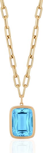 A bright cushion-cut blue topaz pendant mimics the electric energy of New York City on this hand-polished necklace of 18-karat gold.