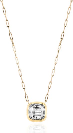 A cushion-cut stone adds light-catching color to this 18-karat-gold necklace outfitted with a contemporary paper-clip chain.
