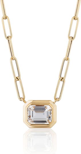 A bright emerald-cut stone pendant mimics the bold energy of New York on this hand-polished necklace crafted from 18-karat gold.