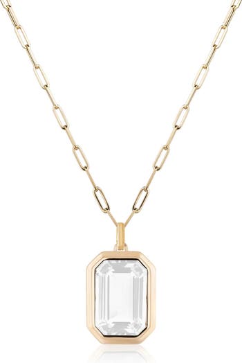 A bright cushion-cut stone pendant mimics the electric energy of New York City on this hand-polished necklace of 18-karat gold.