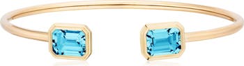 Cushion-cut stones punctuate this 18-karat-gold cuff bracelet with a light-catching glow.