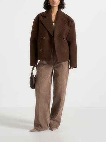 A versatile unisex outerwear piece that balances design with modern refinement, this coat is crafted from soft wool fabric for a high-quality finish and warmth. Defined by classic tailoring, its double breasted silhouette creates a timeless shape, elevated by marble feature buttons for a refined statement accent. Angular wool-lined front pockets add both practicality and comfort, while the smooth satin lining offers a refined feel.