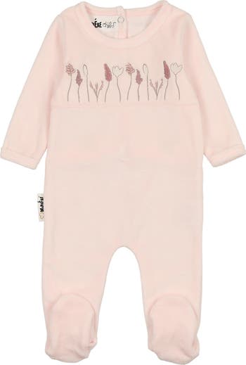 Garden embroidery sweetens a cotton-rich footie that will have baby doing what they do best in total comfort.