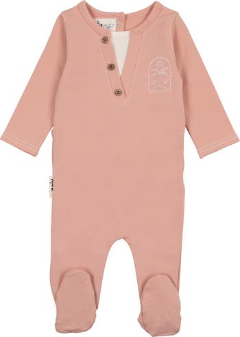 This henley-inspired footie in soft stretch cotton is a perfectly cozy option for you little one.