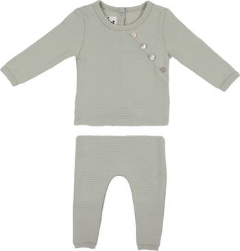 This sweet two-piece pajama set made from a soft cotton blend keeps your little one cozy with its snug waffle knit.