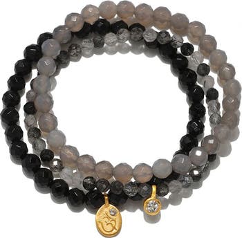 Manifest good fortune in your life with this trio of healing gemstone bracelets. With grey agate, black onyx, and black rutilated quartz, these bracelets tap into the energy of good fortune, grounding, and strength. Ignite your intention by wearing them alone, or pile them on for a personalized bracelet stack to inspire your journey.