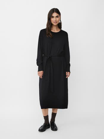 Irresistibly soft knit dress in a thin, stretchy fabric that makes it lovely to wear. It has a simple design with a round neck, long sleeves, and a detachable belt at the waist to highlight your figure.