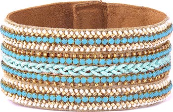 Mixed-finish beads and woven cords add pretty texture to this statement bracelet that looks like a curated stack.