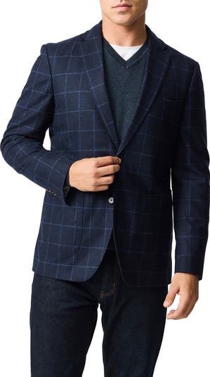 A chalky windowpane check neatly grids a sport coat tailored from a softly felted wool blend in a versatile navy hue that complements any casual or semiformal look. Fully lined and lightly unconstructed, it layers easily and makes a great choice for cool-weather occasions.