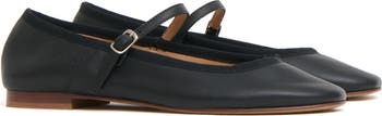 A slim mary jane strap adds a retro aesthetic to a rich leather flat fashioned with a round toe for a dancer-like look.