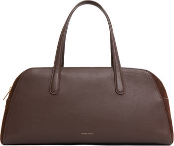 Clean lines and an elongated silhouette emphasize the simple, elegant design of this spacious shoulder bag crafted in Italy from soft calfskin leather.
