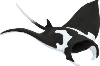 Mantas are truly fascinating creatures and the largest members of the rays family. Despite their imposing size, up to 20 feet across, they are gentle giants, posing no threat to humans. Safari Ltd.'s Manta Ray Figurine offers an authentic glimpse of this remarkable marine life. The figure is portrayed in a filter feeding pose, with mouth open wide, showcasing the unique way mantas feed on small organisms like shrimp and krill. Its hand-painted black body with white markings on the tail, wingtips, and head, as well as its white underside, add to the lifelike appeal. This Manta Ray toy not only adds a touch of the ocean's splendor to any collection or display but also serves as a valuable educational tool. It can spark curiosity about marine biology, conservation, and the rich diversity of sea life. Measuring 4 ½ inches wide and 5 ¾ inches long, this figure is a prominent and engaging piece that encourages imaginative play and learning. Being part of the Wild Safari® Sea Life collection, it reflects Safari Ltd.'s commitment to creating high-quality, non-toxic, BPA-free products that inspire appreciation for the natural world. Explore the wonders of the ocean with this beautiful Manta Ray figure. It's a perfect gift, educational aid, or collectible for anyone passionate about marine life.