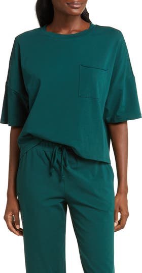 Stretchy organic-cotton jersey lends serious comfort to this boxy pajama top with a handy chest pocket.
