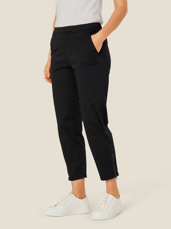 Simple, elegant pants in soft cotton with stretch, that makes them lovely to wear. The pants have an elasticated waistband at the back and are designed with zip slits at the bottom of the legs to contrast the stylish look.