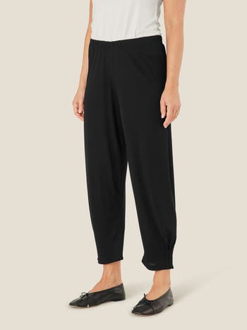 These simple pants are both stylish and comfortable. They are designed in soft viscose with an elasticated waist and a loose, relaxed cut. The three pleats add a nice detail that makes the pants slightly tapered at the bottom.