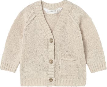 A soft and cozy cardigan crafted in a warm knit, featuring a classic V-neck and button-down front. With its gentle texture and practical pocket detail, this piece is perfect for layering during cooler days while keeping little ones stylish and comfortable.