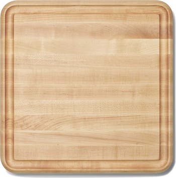 Whether carving a roast or presenting charcuterie, this maple butcher block makes everything you serve a bit more grand. Designed with a groove on one side to catch juices, it's made from edge-grain wood that's naturally antimicrobial, gentle on knives and stays steady while you work.