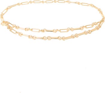 Slim paper-clip links connected with delicate rings lend modern appeal to a chain belt designed to illuminate your look.