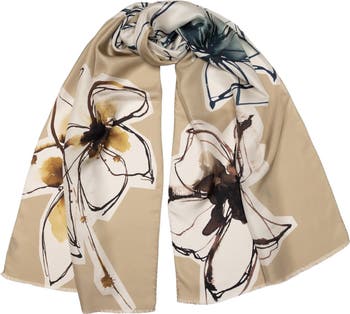 Silky silk twill. Abstract florals. Pure style. This long, fluid scarf combines modern watercolor washes with fine pen-drawn blooms for a look that’s artistic, fresh, and effortlessly feminine. Soft, smooth, and versatile — wrap, drape, or tie to instantly transform your outfit. A statement scarf you’ll reach for season after season.