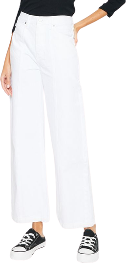 Our Mara Ultra High Rise Wide Leg Jeans come in a pleated structured design with tacking details that give this style a unique look. Sits high above the natural waistline as it relaxes and begins to widen out towards the calf. Made with rigid denim that won't bag out or lose its shape. Features a classic five-pocket design and hidden five-button closure.