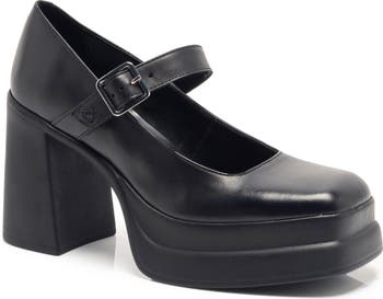 An elevated platform and chunky heel add modern flair to this square-toe pump perfectly balanced by classic mary-jane silhouette.