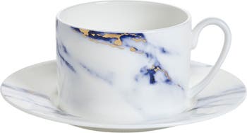 Prouna Marble Azure Tea Cup & Saucer, Alternate, color, White