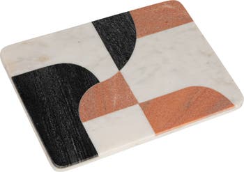 Marble Cutting Board with Abstract Design, White, Rust Color and Black