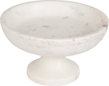 This footed bowl works great for display or serving purposes. Made out of marble and featuring a sleek white color, this modern bowl looks great on countertops. Perfect for storing fresh fruits or snacks, or for serving friends and family in style