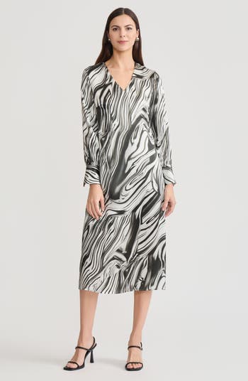 The Marble Print Silk Maxi Dress offers effortless elegance with a contemporary artistic edge. Crafted from fluid silk with a striking marble-inspired pattern, it drapes beautifully for a refined, elongated silhouette. The V-neckline and long sleeves add a touch of sophistication, making it a versatile piece that transitions seamlessly from daytime events to evening occasions. Slip on your favorite heels and minimal jewelry for a polished look that feels both modern and timeless.