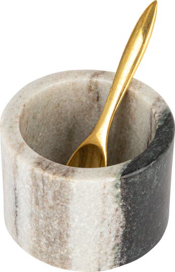 - A sophisticated black marble salt cellar, complete with a sleek brass spoon, perfect for the modern epicure