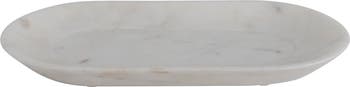 White genuine marble tray; Create a striking display of candles and decorative accents atop a console table, or rest this tray on a pouf to create an end table alternative; Made from 100% marble; Tray measures 11" L x 5" W x 1" H
