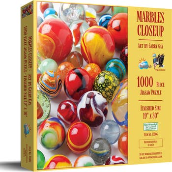 Marbles Closeup 1000 pc Jigsaw Puzzle by SunsOut - 1000 Piece Jigsaw Puzzle - Completed Size: 19" x 30" - Puzzle Artist: Garry Gay - Interlocking Pieces and Durable Construction: SunsOut jigsaw puzzles feature interlocking pieces that fit securely, making assembly easier and reducing frustration. -Ages: 15 years and older - Perfect for adults and seniors. SunsOut puzzles ensure high manufacturing standards ensuring their commitment to quality and customer service. - SunsOut puzzles use soy based inks, high quality puzzle board. As this is a jigsaw puzzle: assembly is required and batteries are not required.