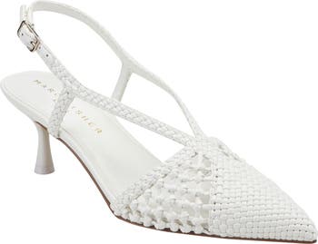 Woven construction adds just the right hint of texture to this versatile pointy-toe pump complete with a slingback strap.